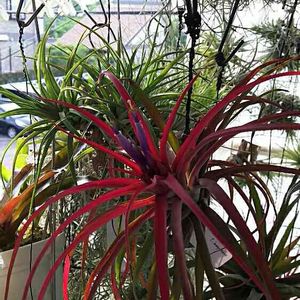 ブラキカウロス、開花しました😃。 100均のチランジア。 放置ぎみだったのに、がんばりました😃。