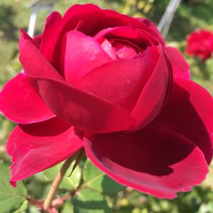 これも植えてみたい品種。 深紅です。 先月撮ったから、やくらいガーデンもバラはそろそろ終わりかな。 でも今月はラベンダー畑が良いんですよね✨