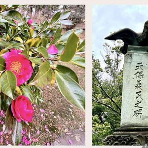 武道館の生垣 残雪の白 赤い椿 雪を踏みつつ...
