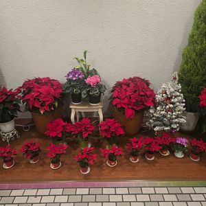 通勤途中シリーズ✨506 いつものビル地下のポインセチアと一緒に飾られたシクラメン💕 後半は、10月末に道の駅で撮影。 クリスマスと言えば、ポインセチアとシクラメンかな。