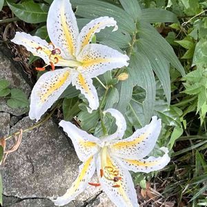 ヤマユリ(山百合) 別名が料理百合と呼ばれるように根茎は食用のユリネになります😊 日本特産の大型ユリで山中でよく目立ちます😃 古株では20個もの花を付けることがあるそうです🧐
