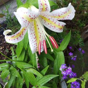 ヤマユリ⚜️タネから育て咲きました❀.*・゚ 💜紫色はタピアンです*°♡ お友達から分けて戴き春からずっと咲いてます💕