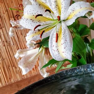 今日のお花 カサブランカ⚜️ 一週間前のpic やっぱり白色が好き❣️ 汚れるので花粉は取ります(本当はあった方がいいね) 左の上に先日のヤマユリが写っています 涼しい雨降りで7月も終わります☔ この後、気温上がる予報❔