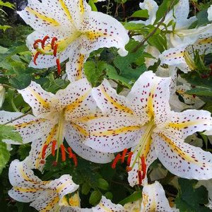 ヤマユリ達が咲きました。悪天候だったので避難させてました。