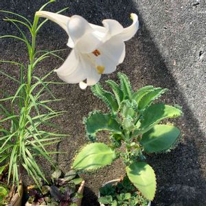 山から勝手に我が家にやって来たヤマユリとご近所さんに頂いた子宝草😅 赤ちゃんびっしり💦 ヤマユリは毎年キチンと咲いてくれます❁⃘*.゚