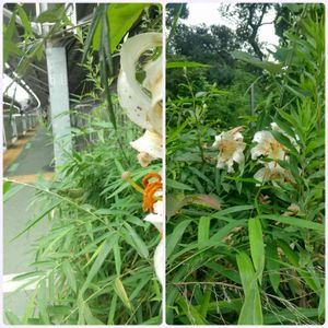 JR原宿駅の山手線外回りホームの端っこです。先程16時ごろ。 なんとヤマユリ1輪だけがホームに飛び出して来てました。 でも、たぶん駅員さん達意外は誰も気がつかないような端っこです。 笹や、たぶんアキノキリンソウ、タケニグサやイタドリなどとの競争です。 右の写真の左や上を良く見ると、カノコユリのツボミが沢山付いてました。 これも楽しみです。 去年はホームで、カノコユリしか発見してませんでしたが、ヤマユリも咲いていたとは驚きです‼️