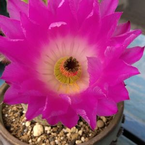 ベランダより 紫太陽のお花が10時半頃 咲いていました🩷 植え替えてやっとグラグラしなくなり他の子に比べて大きくならずに突然変化しだしたと思ったら花芽でした🩷🎶🩷 ウキウキしていたら突然に蕾が膨らみ1時過ぎあっという間に大きなお花が咲きました♪♪ 小さなからだ大きなお花 とても美人さんです❣️ サボテンさんて不思議🤔 だからやめられないのかも 昨日の月は雲が出たけれど美しい光をはなって🌝 横にスライドして見てね♪ 🏷雲仲間 🏷ピンクワールドへよう、 🏷サボテン 🏷金曜日の蕾たち 🏷コラージュ仲間達