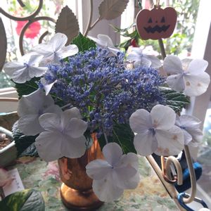 ベランダより 微妙に違う2鉢のアジサイ 涼しげに素敵なお花です 雨が似合うお花が好き🩵 🏷雲仲間 🏷七変化 🏷笑顔で感謝を 🏷青い花マニア