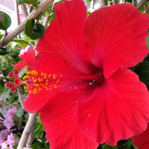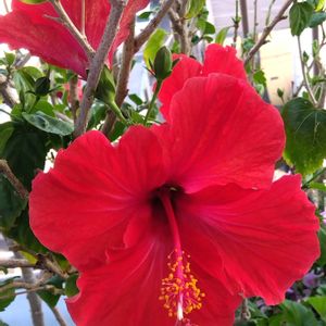 ベランダより 🌺今日のハイビスカス🌺 梅雨空に每日たくさんの花をつけ微笑みかけてくれる赤い花は元気いっぱいです 新芽に蕾もつき下のほうの花も咲き始めました もやった空から雨が💧💧 🏷雲仲間🏷アート雲☁️ 🏷今日のハイビスカス 🏷梅雨入り 🏷笑顔で感謝を