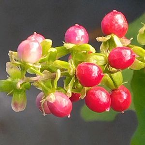 ベランダより ①② ジュズサンゴの実が色づいて可愛らしい❣️ ③④ 今朝は蕾が膨らみ每日たくさん咲いていたので 素敵に5個開いていました ⑤ ピンクキャンディーも 每日咲いています♪ 🏷真っ赤な火曜日 🏷あっ火曜日 🏷笑顔で感謝を に参加させて下さいね🎵