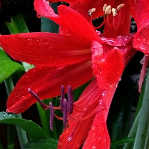路地裏散歩 今日のお花 アマリリス ①②③ 6月初旬のpicです小雨の雫をまとって美しい ④ 今朝の雨の隙間に撮った ナスがみずみずしい ⑤ シマトネリコのお花が豪雨の後雫をまとって 🏷水滴の水曜日 🏷雨粒 🏷笑顔で感謝を