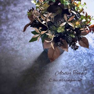 シャビー&ナチュラル千葉認定校の アトリエテラスです。 ベーシックコース生徒様作品、 シックアレンジです。 シックな色合いでも、とても可愛く 完成しました!