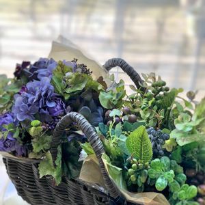 今年人気の横長カゴバッグ。 今月のレッスン花材の中から シックアレンジ用の2つの花材を 入れてみました。