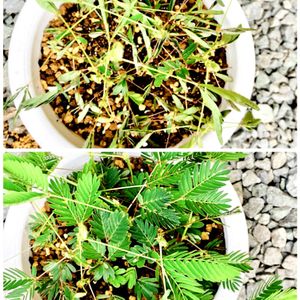 ネムノキは少しでも🤏触る(動かす)と上のように縮こまる。 しばらくすると、葉が開く😄 不思議が素敵❗️