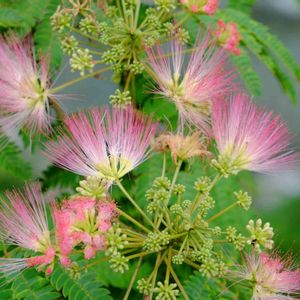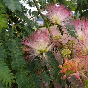 合歓の木(ネムノキ)🌱 赤いフワフワの花もまん丸つぼみもかわいいけど この鳥の羽のような葉っぱ🌱も綺麗✨ね❤️