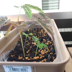 先週植えたネムノキ🎵 夜になるとほんとに葉が閉じるんですね! 大きくなーれ!! 右奥は昨年植えたサンキライ。 今年こそはリースの花材になるといいな。