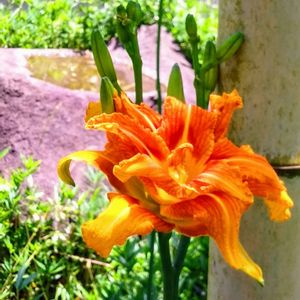ヤブカンゾウ ツルボラン科 キスゲ科 多年草 昨日パァーッと開花🙌 茎に害虫がビッシリ😱 スプレーで駆除 今日萎んでいた🥺 一瞬のオレンジの 花ビラの輝きキャッチ📷