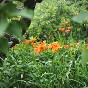 葉が茂る枝垂桜の下に たくさん咲いていました✨ ヤブカンゾウ🌼 ワスレグサとも🌿 お花が一日しかもたないから〜諸説あり📝 GSで見かけましたが食べられるらしいですね❣️ 一度食べてみたいです😊 よく見るとヒメヒオウギズイセンが 混じってる👀