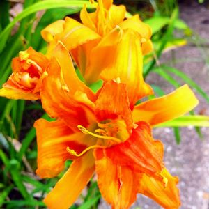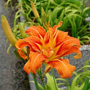 ヤブカンゾウ 道路の隙間から低く けなげに咲いていました