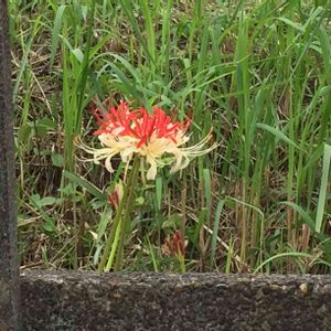 線路沿いに咲いてた花、彼岸花? 赤と白?黄色?が混じっててキレイだったので⍢⃝ 他のは全部単色だったなぁ〜