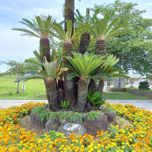 今日は果報バンタ(カフーバンタ)に行ってきました。バンタ(崖)に行くまでの道に立派なソテツが沢山あって、わーお!😳😳😳 これはほんの一部です。 こちらはミネラルたっぷりのお塩、ぬちまーすさんの工場の敷地内にあります。敷地内にはパワースポットも幾つかあり、しっかりパワーチャージもさせてもらいました🌈