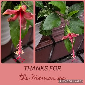 ◉ハイビスカス 🌺 アオイ科 常緑低木 ○マリーナサンライズ 明るい斑入り葉が特徴的 花は 花弁が外側に反り 返ります 一重咲きの真っ赤な花色 優雅な花姿です❣️ ◎午前中は、凄い雷と 稲光りでした ⚡️ ☔️ いつの間にかマリーナ サンライズの花が咲いて いました♪ 斑入り葉が涼しげです