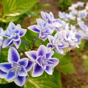 梅雨の中休みです⛅️😃 昨日の散歩道🐕️🐾👣で 出会った 紫陽花 いろいろ💠💜❤️🤍 ヤマアジサイ「紅」は我が家より虫食いも無く鮮やかな赤❣️羨ましく…🥰📱✨️ 3枚目の紫陽花は🩵はとても小さな花達の集まりでした😊💓