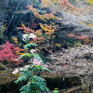 【 小原四季桜🌸 】 淡いピンクの四季桜と赤と黄色の紅葉🍁を 一緒に見ることが出来て素敵です💕