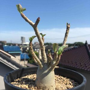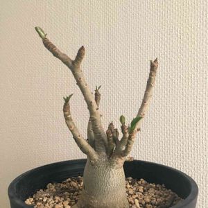 ラモシッシマの小さい苗。アデニウムは明るめの日影でも芽がたくさん出てきた。