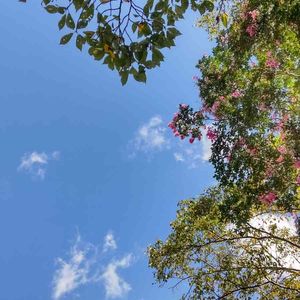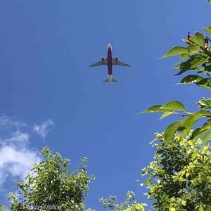夏空の青にピンク色の飛行機✈️ 桜の葉がキラキラ✨してて とても綺麗でした💙