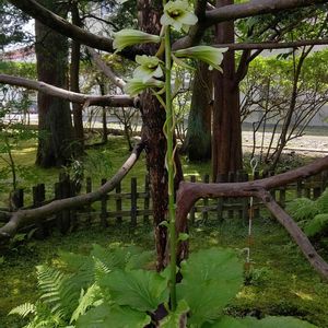 夏の日…🌲 やや暗い山林などで見かける大きな黄緑色のオオウバユリ咲いてました!