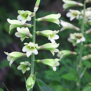 オオウバユリ(大姥百合) 🌿ユリ科 ウバユリ属 ✽高さが1〜1.5mの1回繁殖型多年草 ✽地下に鱗茎があり小鱗茎をつくり栄養繁殖も行う ✽葉は光沢と厚みがあり、葉脈は網目状 ✽花は5〜20個つく 近くでは鹿による食害で殆ど見られなくなったので、場所を変えて探してみたら咲き始めていました🍀