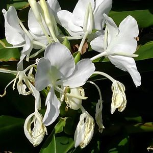 【ジンジャーリリー】《ショウガ科》 花言葉 「清らかな心」「高潔」「豊かな心」 「あなたを信頼します」 ジンジャーの花が咲いている姿が、蝶が群れて飛んでいるように見えるため「バタフライジンジャー」と呼ばれることがあります。また、甘くて良い香りと白いユリのような花姿からは「ホワイトジンジャーリリー」や「ジンジャーリリー」と呼ばれている