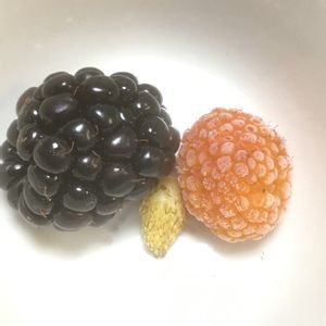 Black, white and yellow. 肌の色は違くとも、 みんな仲良く… 食ってやる😋 (イエローラズベリーは5月に採れたもの。冷凍です。)