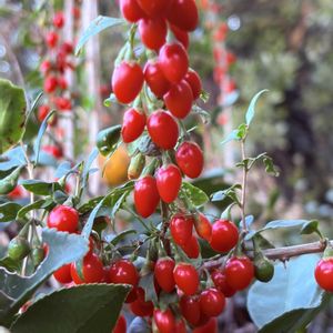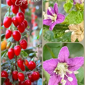 今日の早朝ウォーキングで ①②クコの実 ③シャリンバイ ④マンリョウ ⑤バショウ花が咲きました。