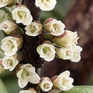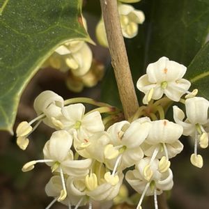 今日の庭の様子 ハマヒサカキ 小さな花です。ガスの匂いがするので花が咲いたのが判ります。
