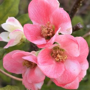 今日の早朝ウォーキングで ①ツバキ ②ジャスターデージー ③チェリーセージ ④サンシュユ ⑤ツタ