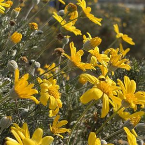 あすたむらんど徳島で ①ユリオプスデージー🌼 ②サザンカ ③明かりの雪だるま ④ドウダンツツジ ⑤ツルマサキ