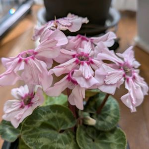 今日のお部屋の花〜💗 シクラメン イリュージア・ピンクラテ 珍しい花姿ですよね🥰 昨年暮れ値引き品を購入。 花数も少なく弱々しかったのですが少しづつ元気になって来ました✨️