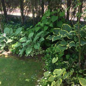 すこし日陰で、芝生。涼しげなopen gardenしてるお家のお庭。