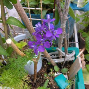 picNo.1916 追記キッチンで飾っている蕾のニゲラ開花していたょ こんにちは😊曇り空だった午前の様子です。 ピンボケ写真ばかり😣 Ⅰニゲラ’23年より前に購入の 品種でミスジーキル混合?かペルシャンジュエル? 採取した風船🎈の実を種蒔きしたもの。 Ⅱ こちらも同じく混合種から Ⅲ 同じく混合種から Ⅳ ’23年頃種蒔きした品種の ブプレウルム セリ科の黄緑色が特徴ある花が出現しました🙌 種購入に100粒からひと株だけかぁ 発芽率低いのか覆土が悪かったのか? 長い月日でした Ⅴ 柑橘類種からの木 河津桜の所とは別に発泡スチロール箱に デュランタや、シランと一緒に植えてる 蝶々🦋の卵や幼虫が来たょ 時々飛来していた🦋が産卵に選んだね 河津桜のはネット被していて枝が曲がりました😂 見切り品ニゲラ達は未だ開花しませんこの前の1輪だけ。