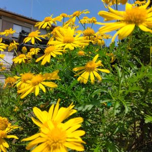 2枚目補足情報 ’24.10/に購入した菊の花苗が草丈伸びて花が咲きそう イノチオ精興園さんの🏷付き 夕方の水やりで、🌻が開いていた 相葉雅紀さんのテレビ📺で藤沢市の枝豆農家さん ちで番組ロケやっていた様です pickNo2021 こんにちは☀ 🥵 テレビ📺見ない時間帯の暑い時間に 花パトをしちゃう 私 今日のハジー🐕プランター植え、鉢植え、発泡スチロール箱植えから🎶 【1】💜デュランタ タカラヅカが 沢山開花してる 【2】菊のやや開花 購入してから長い間ダメにならずに居てくれる葉は枯らすけど😰 【3】アマドコロと蔓ニチニチソウの鉢の中にポリ容器のままポーチュラカオレンジ色💛 【4】胡瓜🥒の花は相変わらず雄花ばかり咲いていて雌花が咲かない 液肥より緩効性化成肥料の方が良いのだろうか? 【5】昨年フリマアプリ メルカリから、おまけで頂いた タビビトの種 ずーっと変化無し 青色が、落ちて黒い様な長い楕円形の種、撮すと白くなってて そういえば昨年パンパグラスも埋めたけど、行方不明 種在庫を見直すと、スカビオサの白花はフリマアプリからのでした。 今日も暑い1日かな エアコンのフル稼働の中で過ごします