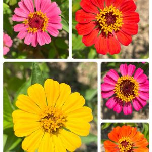 こんにちは😃☀️ ⌘今日のお花⌘ 🌼ヒャクニチソウ🌼 我が家の畑に去年の溢れ種 から沢山の百日草が咲いています^_^🎶💕どの花も可愛いですね🥰🍀ピンクが好きだけど最近は元気になれる黄色が好きになり少し大きめにしました🌼