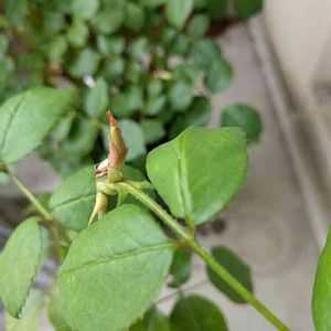 おはようございます☁ 今日から8月です👒 蝉が朝から大合唱しています 昨日のイングリッドバーグマン🌹 新芽を見つけました💕 嬉しいな〜頑張ってるんだね😄