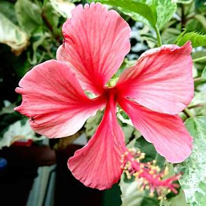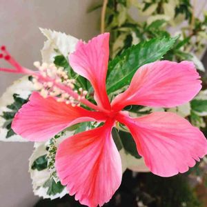 昨日、お迎えした班入りスノーフレイク。 咲いた☀️🌺🥰🌴 良いお天気の中咲いた☀️💦 赤かなと思ってたらピンクなのね‼️🌴🌺 とっても可愛いです🥰