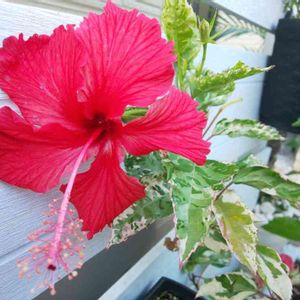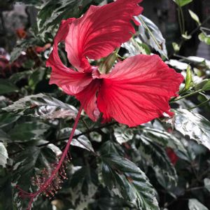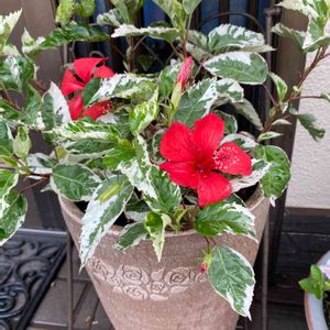 ハイビスカスがすこし涼しくなってきてまた元気を取り戻しています✨✨ この子はスノーフレーク。 斑入りの葉っぱがとってもきれいな子です😍😍😍 いつもは冬にすごく短く剪定するのですが、花の数が少ないので、この冬は弱剪定にしてみたんです😊 そしたら、春に早速咲いてくれて、真夏はお休みしてまた今蕾を持っています✨✨ 葉っぱだけでもきれいなんだけど、やっぱりお花が咲いてくれると嬉しいですね🌺