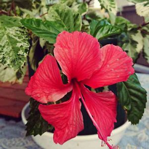 班入り葉のハイビスカス、スノーフレークが咲きました! 葉っぱに班入りのハイビスカスかぁ!珍しいなぁ!と、つい衝動買いしてしまったハイビスカス、、、 ハイビスカス自体、育てるのは初めてです。 まぢでハイビスカスのイラストそのまんまの花が咲くんだ!と、感動してしまいました(笑)