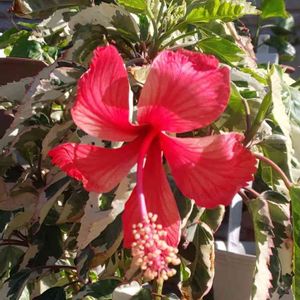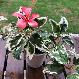 おはようございます🍀斑入りハイビスカスが🌺開花してたので再投稿🍀昨日一目惚れして迎えました😅斑入りにハマってます😅