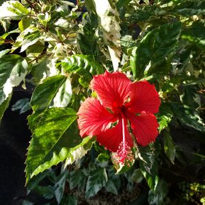 おはようございます ҉*\( * ॑˘ ॑* )🌺𓈒𓏸🍀*゜ ハイビスカス ‘’スノーフレーク”ちゃんです*.(๓´͈ ˘ `͈๓).*🌺🍀*゜ 赤いハイビスカス🌺の花言葉は、 「勇敢」 だそうです(✿´꒳`)ノ°+.*🌺🍀*゜ 今日もおだやかな一日になりますように .˚⊹ ⁺‧( *´꒳`*)‧⁺ ⊹˚.🌺🍀*゜