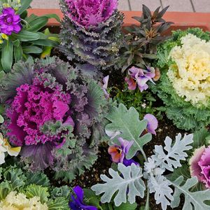 おはようございます。いつもの散歩コ-スで 葉牡丹です✌ 2枚目葉牡丹タワー 3枚目ノジギクです。